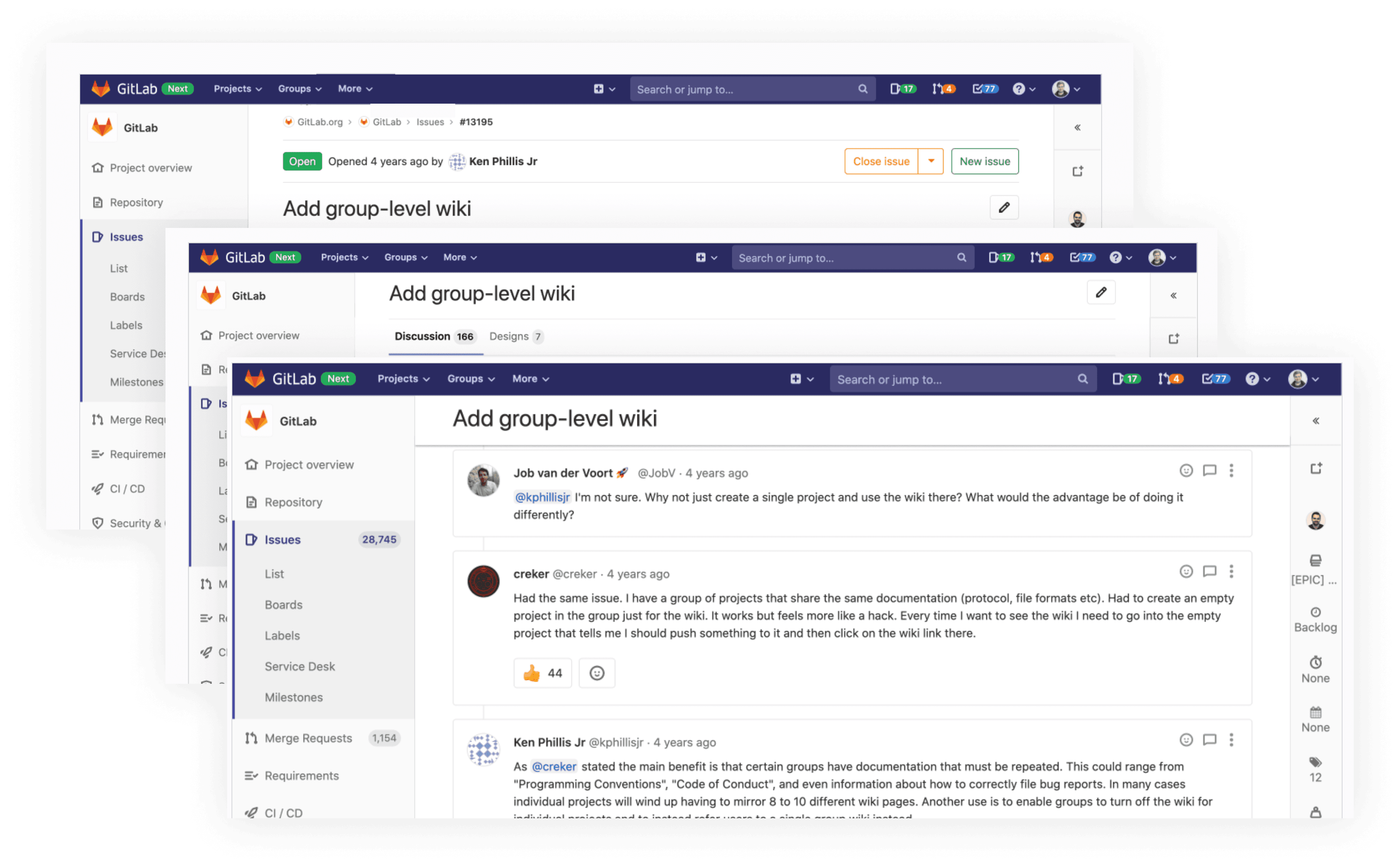 issues. Issues are what GitLab provides for users to document, track and collaborate on ideas and work.